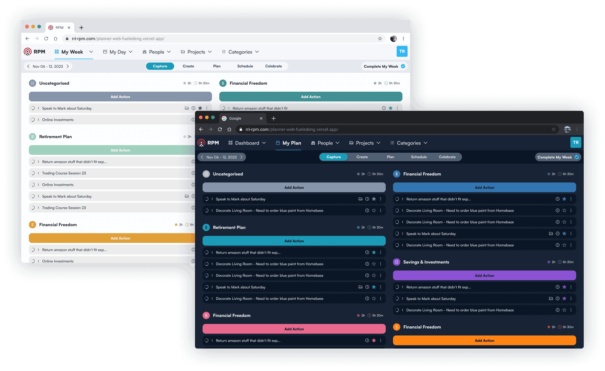 Organise your life the Tony Robbins way. Translating Tony's tried and tested method of achieving your goals from pen and paper to screen. This project centred around the creation, organisation and planning of the user's goals.