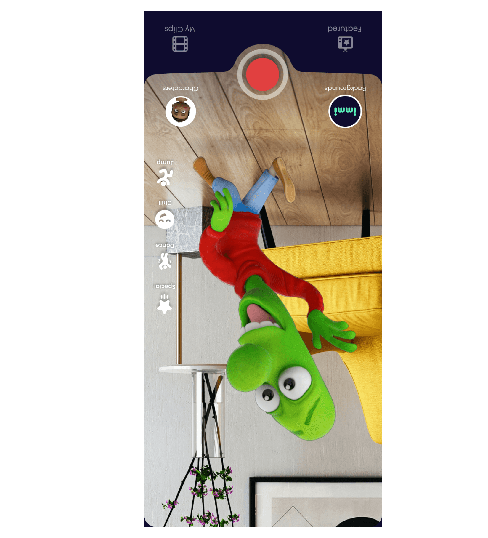 Where imagination meets animation. Immi is a real-time animation tool which allows users to transform themselves in to an array of colourful and expressive characters. The challenge was to create an unobtrusive UI that allowed the user to focus on content creation and social sharing.